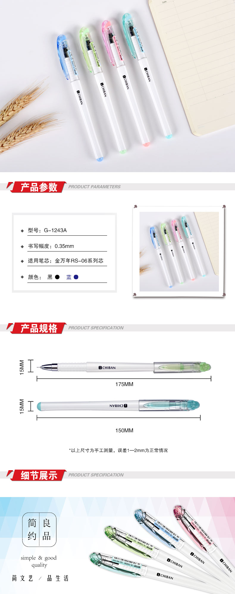 简约素白淡色夹0.35mm配RS06系列芯拔帽中性笔