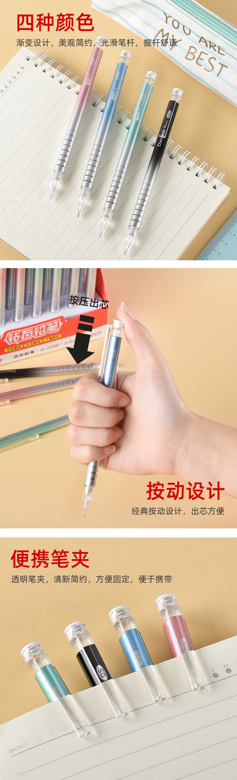 钻石头金属渐变风0.5mmHB自动铅笔