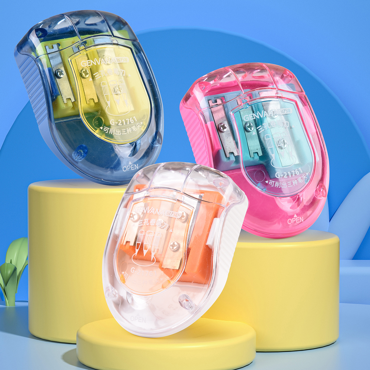 三孔大口径粗细木杆铅笔卷笔刀